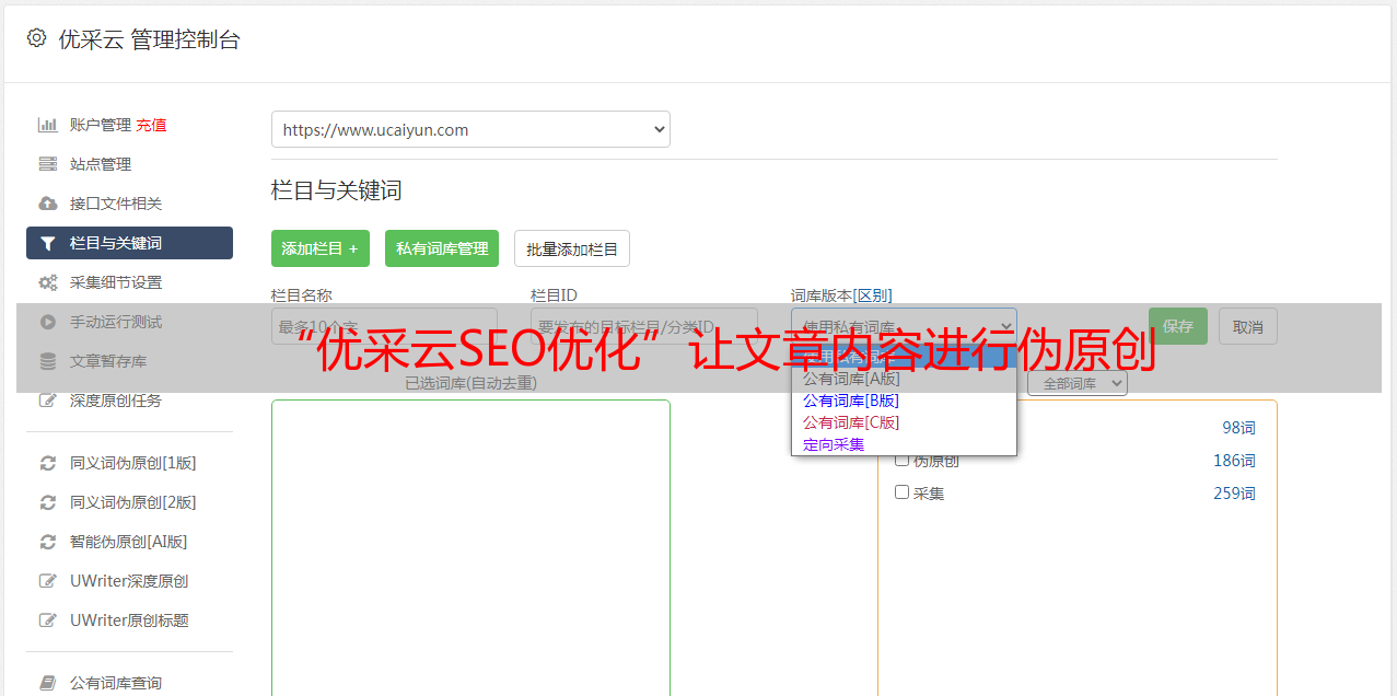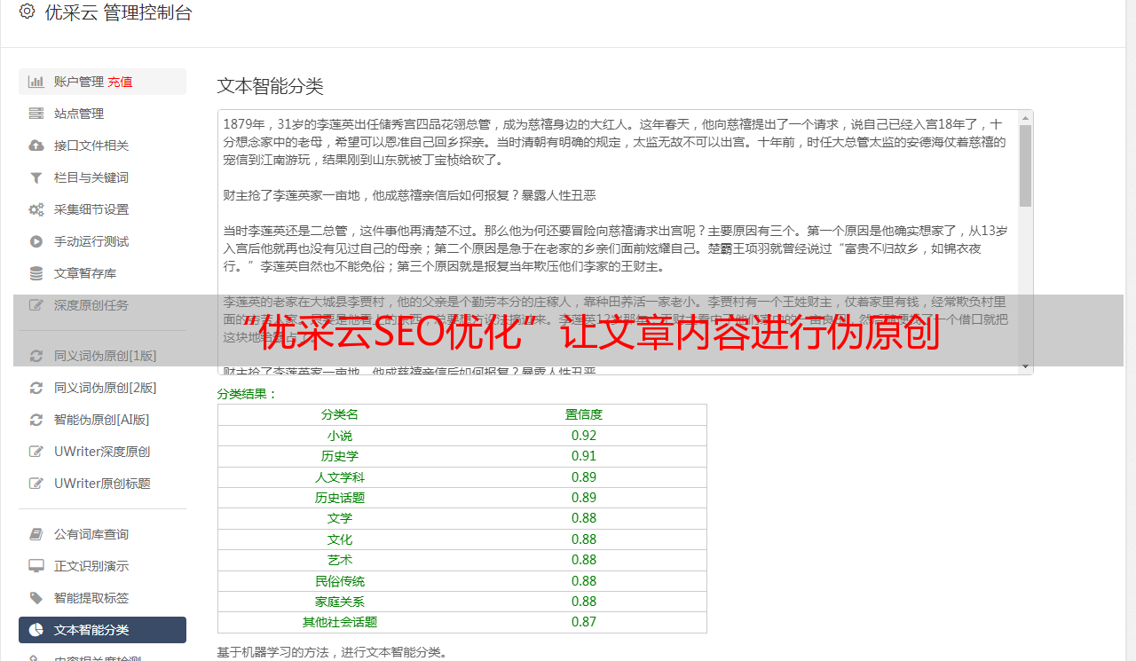“优采云SEO优化”让文章内容进行伪原创