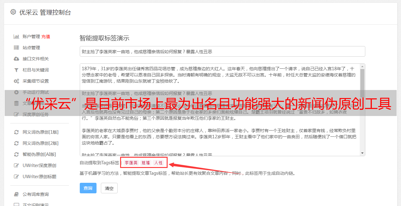 “优采云”是目前市场上最为出名且功能强大的新闻伪原创工具