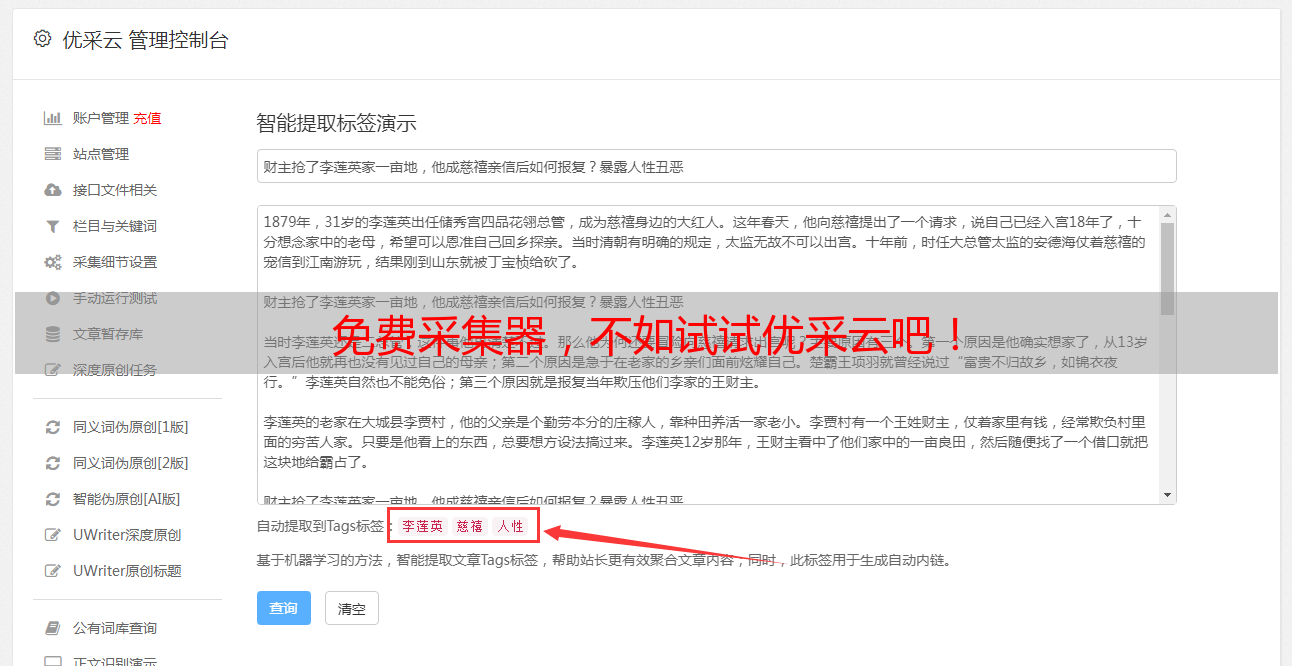 免费采集器,不如试试优采云吧!