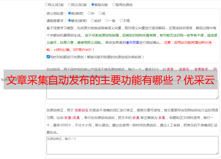优采云的主要功能包括:文章采集、内容校对、SEO优化、文章转换和自动发布。它的文章采集功能可以从各种来源获取高质量的内容,并将其转换为你想要的格式。此外,该软件还具有内容校对和SEO优化功能,能够有效地提升用户的文章分发效率。