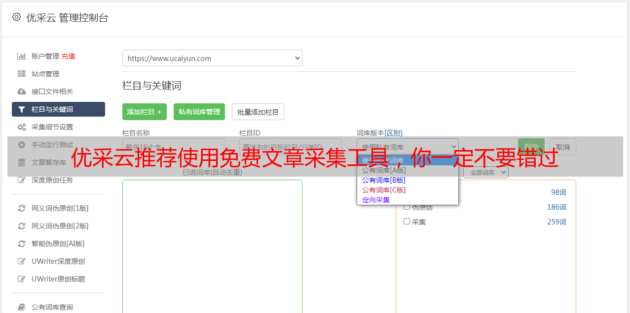 优采云推荐使用免费文章采集工具,你一定不要错过