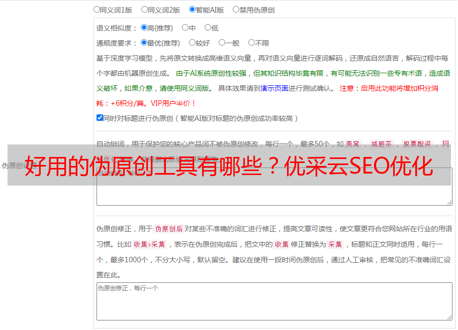 优采云 发布时间: 2023-01-21 08:33近年来,网络发展迅猛,知识的传播也变得更加便捷,但也出现了一些问题,其中最让人头疼的就是内容重复、老旧,伪原创工具成为了各大平台的必备工具。伪原创工具以及伪原创的概念在知乎上也被讨论的很多,很多朋友都想知道有哪些好用的伪原创工具。