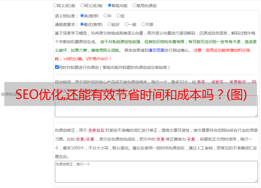 最后,伪原创也可以帮助用户节省成本。相对于独立写作耗费大量时间来实现SEO优化效果来说,使用伪原创能够显著减少人工成本。例如:使用“优采云”这个软件来实现伪原创写作。它通过AI+SEO+NLP三大核心能力帮助用户实现快速、准确、高效的SEO优化效果,并支持批量生成、批量导出、批量上传等一键式服务,可以帮助用户快速、省心地实现SEO优化目标。此外,其支持多语言,不仅可以生成中文文章,还能生成英语、法语、德语、日语、韩语等多国语言,帮助用户覆盖全球市场,增强品牌影响力。