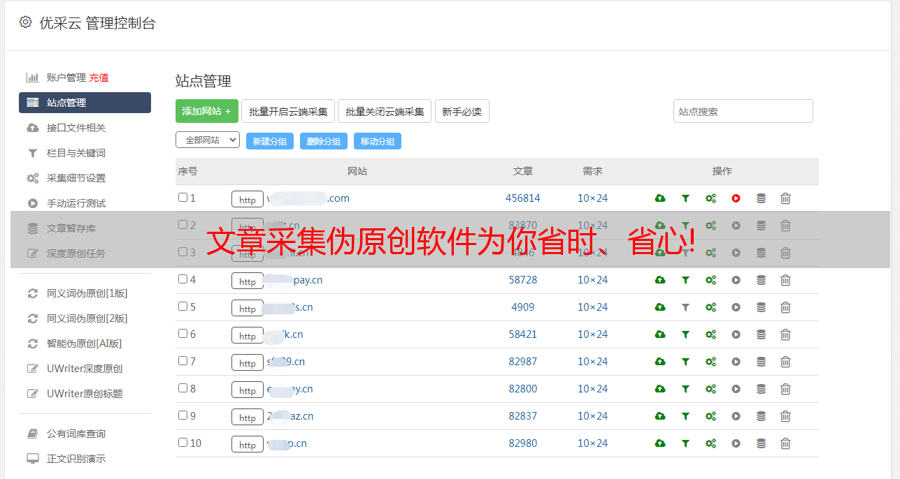 总之,作为一款非常强大、非常实用的文章采集伪原创软件,优采云不仅能够快速生成有独特风格的文章而且还能够进行SEO优化。如果你正在寻找一款好用的文章采集伪原创软件,不如试试看优采云吧!它能够为你省时、省心!