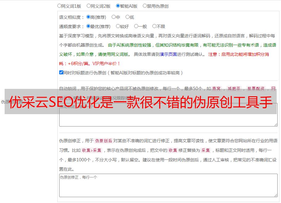 优采云SEO优化是一款很不错的伪原创工具手机app