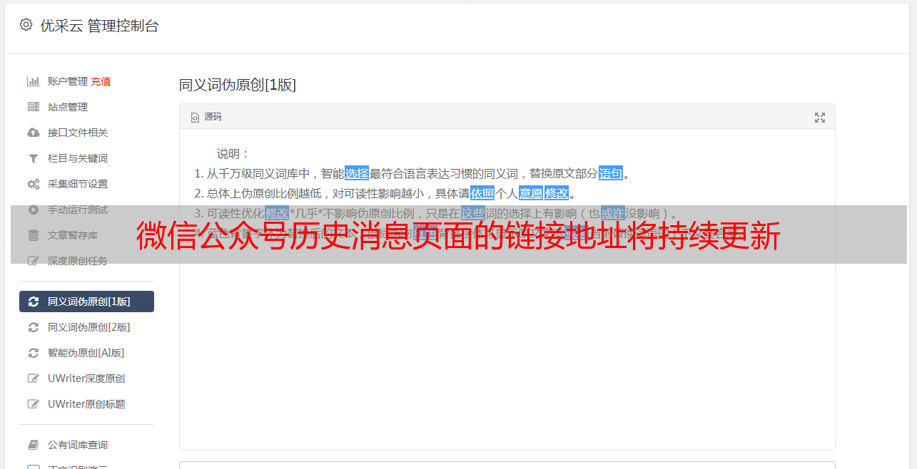优采云 发布时间: 2021-06-05 23:10微信公众号历史消息页面的链接地址将持续更新