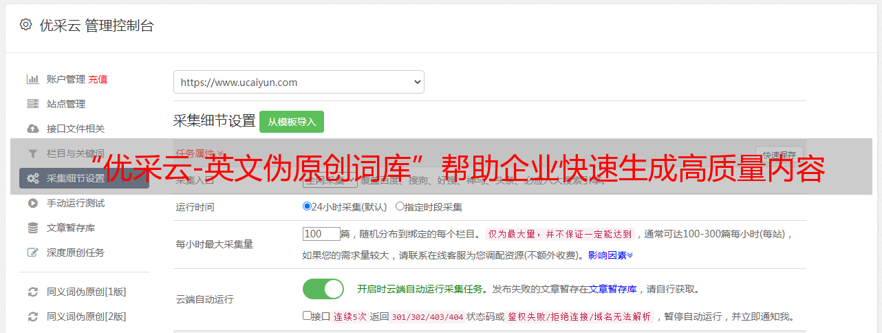 “优采云-英文伪原创词库”帮助企业快速生成高质量内容
