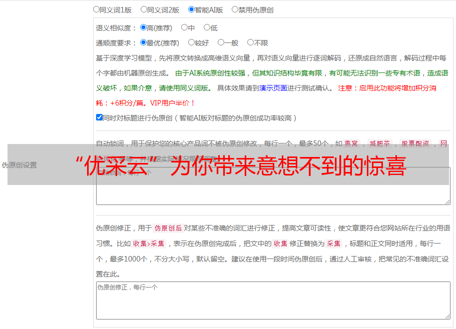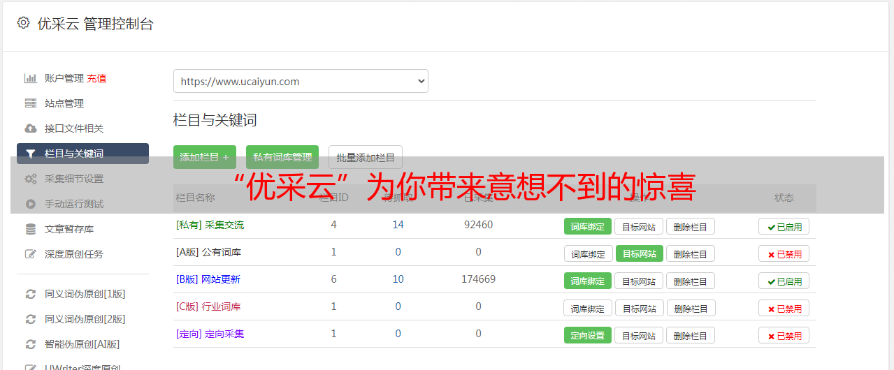 此外,“优采云”还拥有一整套完善的SEO优化工具:一键分析关键词;监测竞争对手情况、智能分析文章内容;让用户在发布文章之前能够对内容进行优化。此外,该软件还可以帮助用户快速生成多样化的内容:图片、视频、音频等。