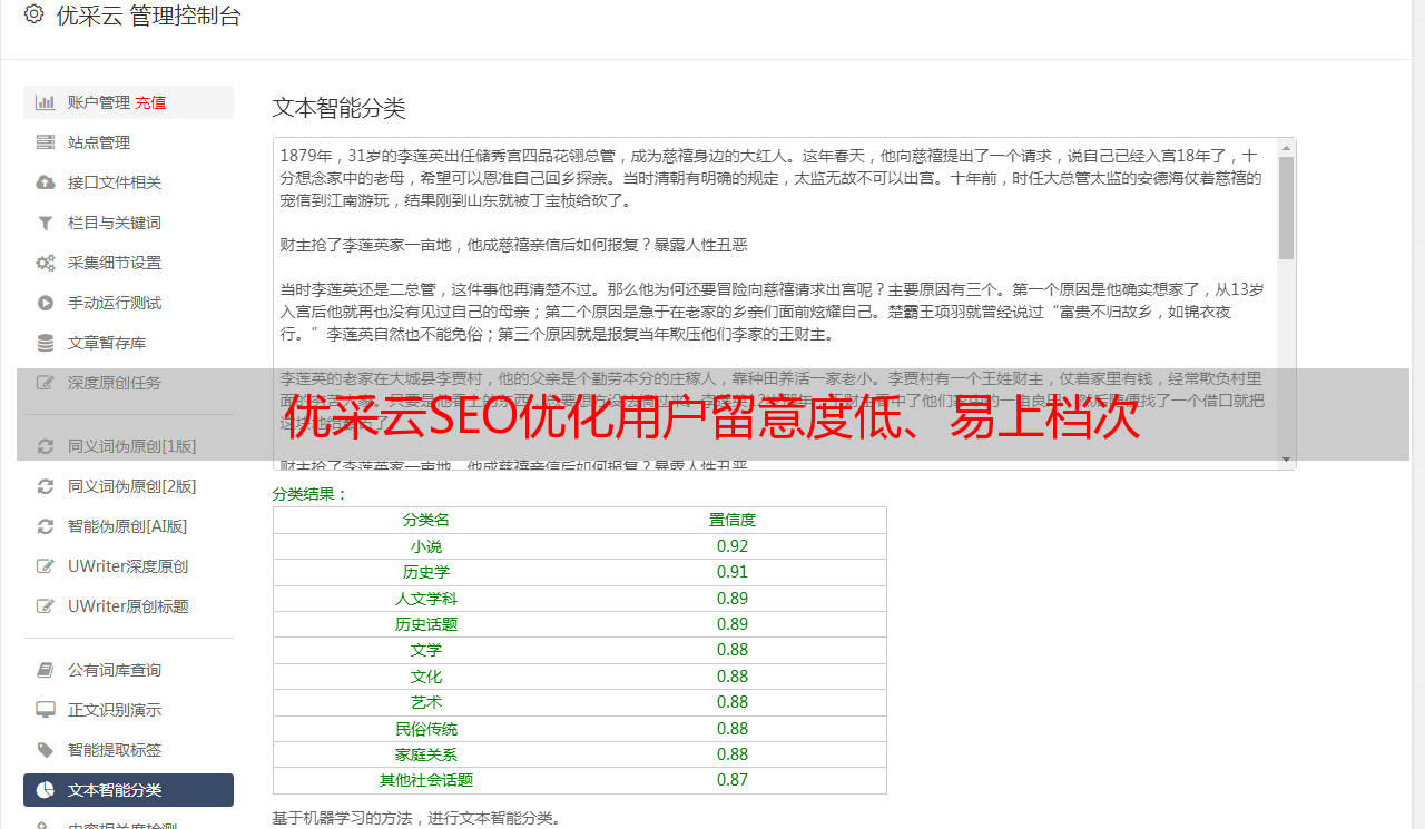 总之,如果想要选择一套性能卓越,功能强大,使用方便,能够帮助用户快速,高效地进行文字处理和图片裁剪,旋转,裁剪和水印处理的伪原创生成工具,那么优采云SEO 优化就是不二之选!它是上海优采云信息科技*敏*感*词*开发出来的一套新型文字处理工具,多样化的文字变形和图片处理,让内容看起来更加有说服力,由此大大促进SEO效益.官网:www.ucaiyun.com ,您将在此找到详情.