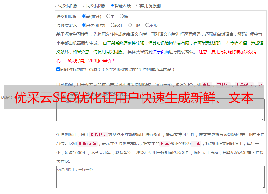 优采云SEO优化让用户快速生成新鲜、文本内容