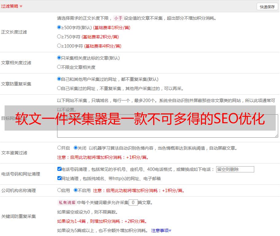 优采云 发布时间: 2023-01-23 14:52软文一件采集器是一款专业的新闻稿采集工具,可以帮助用户快速、准确地收集、自动筛选和推送热门新闻稿内容。它不仅能为您提供最新的软文信息,而且可以帮助您有效地优化SEO,增强网站的流量。这款软件由优采云开发,官网为www.ucaiyun.com,其中包含了对SEO优化的多项特性,可以帮助用户更好地进行网站优化,从而提高网站的流量。