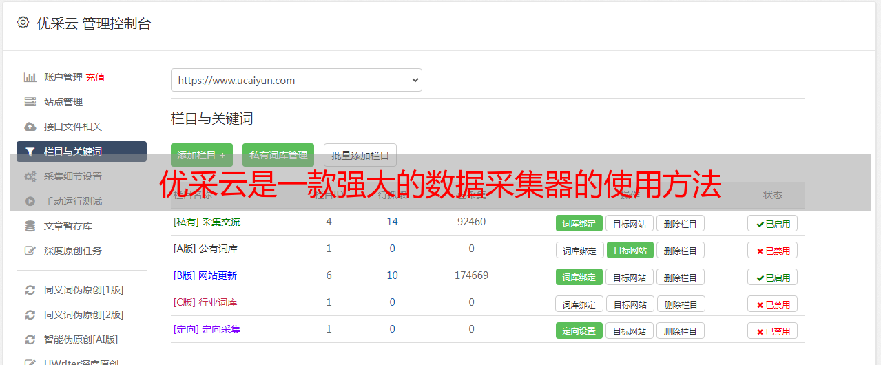 优采云是一款专业的采集器,它具备强大的数据采集功能,可以帮助用户快速准确地从互联网上抓取所需要的信息。优采云不仅具有强大的数据采集功能,还具备SEO优化功能,可以帮助用户解决SEO优化问题。此外,优采云还具有多线程采集、定时计划、数据库导入导出等功能,十分方便用户使用。