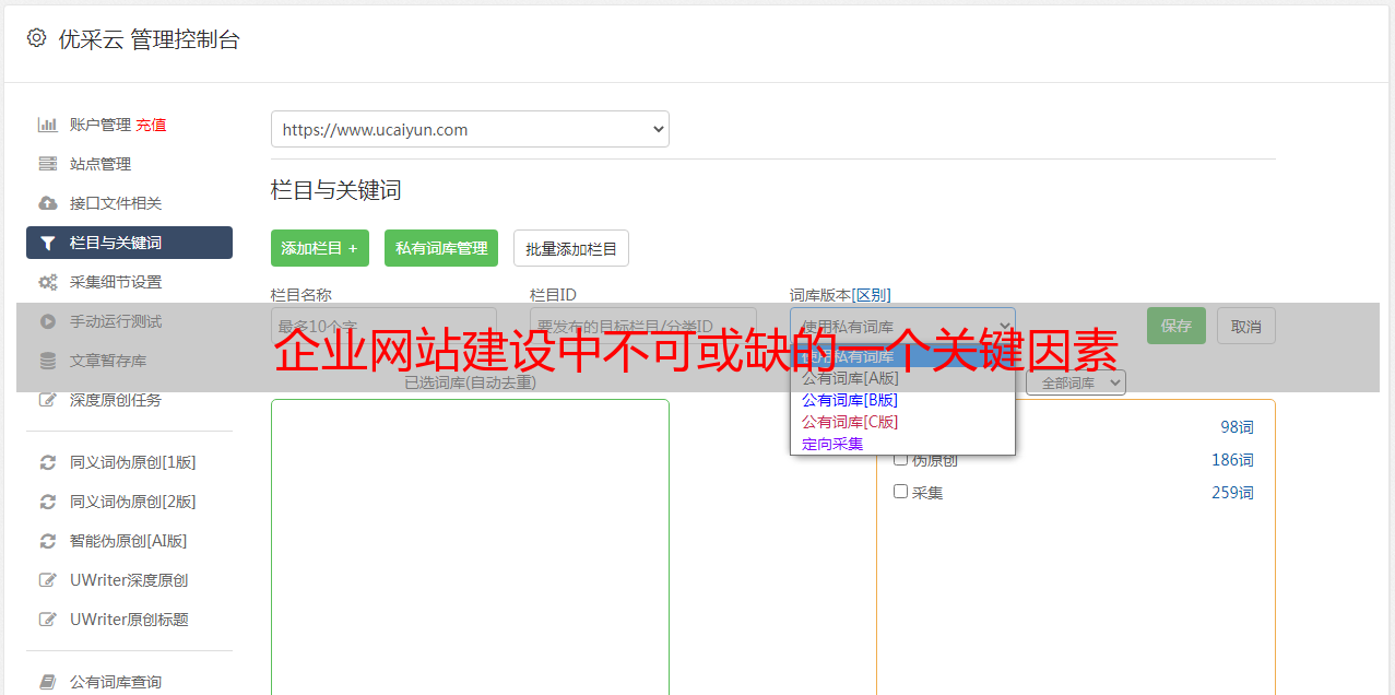 总之,原创文章是企业网站建设中不可或缺的一部分。考虑到原创文章写作并不是一件容易的事情,因此很多企业都将SEO 优化工具作为一项重要依托来帮助实现原创文章写作目标。UCaiyun.com 就是这样一家开发 SEO 优化工具便于用户快速、准确地对文章进行 SEO 优化。