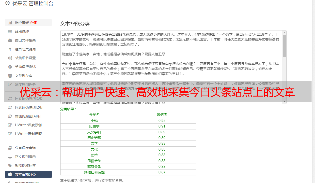 优采云:帮助用户快速、高效地采集今日头条站点上的文章