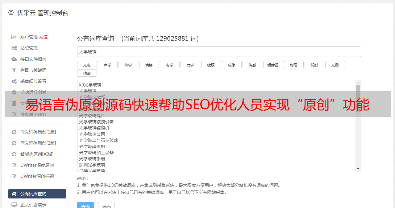 易语言伪原创源码是由国内SEO优化解决方案供应商——“优采云”推出的一款超强工具,它能够在不影响文章原意的情况下,快速帮助SEO优化人员实现伪原创功能。
