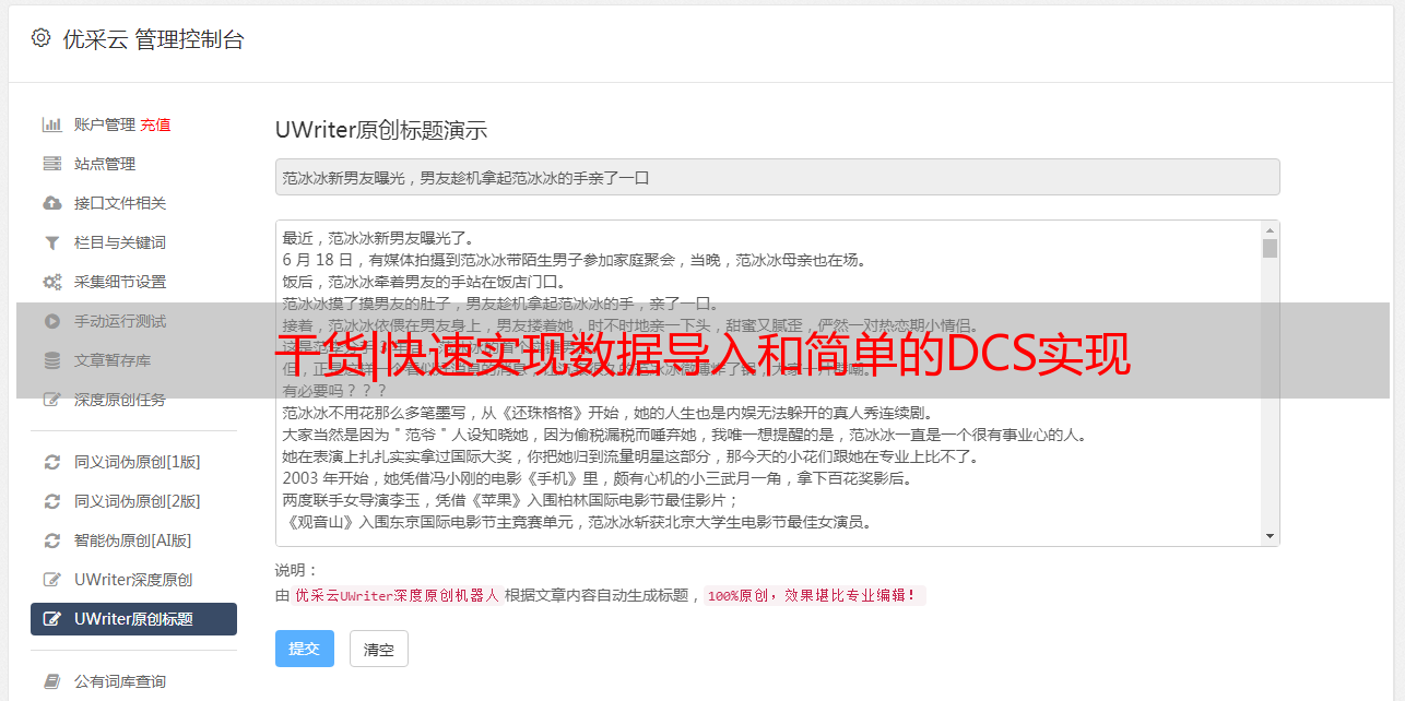 优采云 发布时间: 2020-08-07 18:27干货|快速实现数据导入和简单的DCS实现