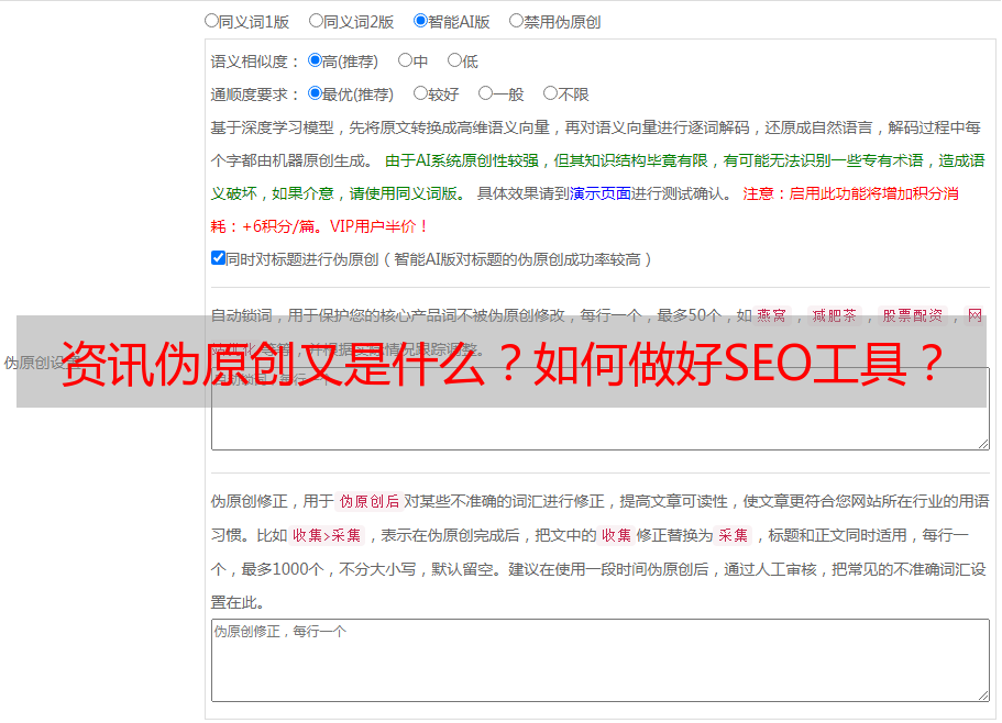 此外,在进行伪原创时还要注意一些常用方法。例如:采用不同的表述方式来表达同一个意思;将文章中重复出现的信息剔除;将不同来源中出现的信息整合在一起形成一个整体。
