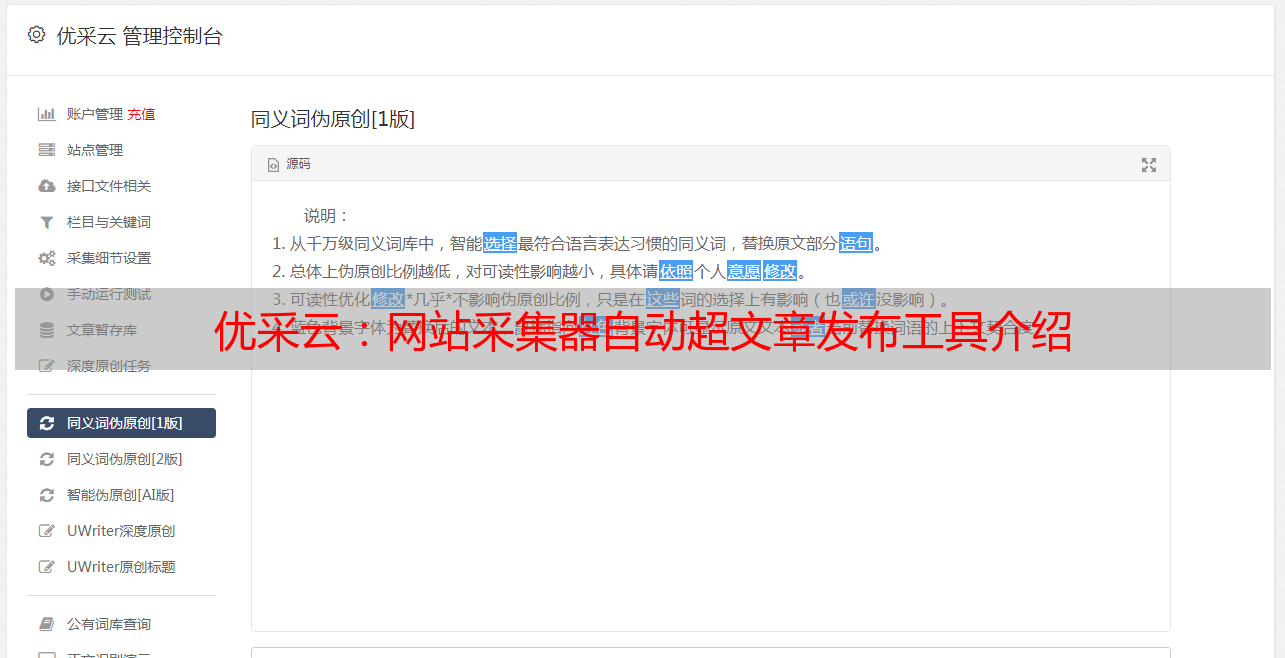使用者可以根据关键词或者相关话题选择要采集的内容,也可以直接将已有的原创内容进行采集。此外,用户也可以使用“一键式”发布功能将采集到的内容快速地发布到各大新闻媒体、SEO优化、博客、微信公众号、微博等来源上。