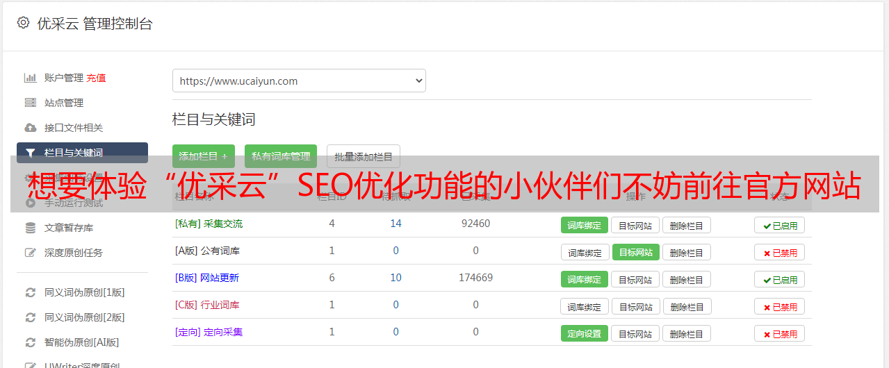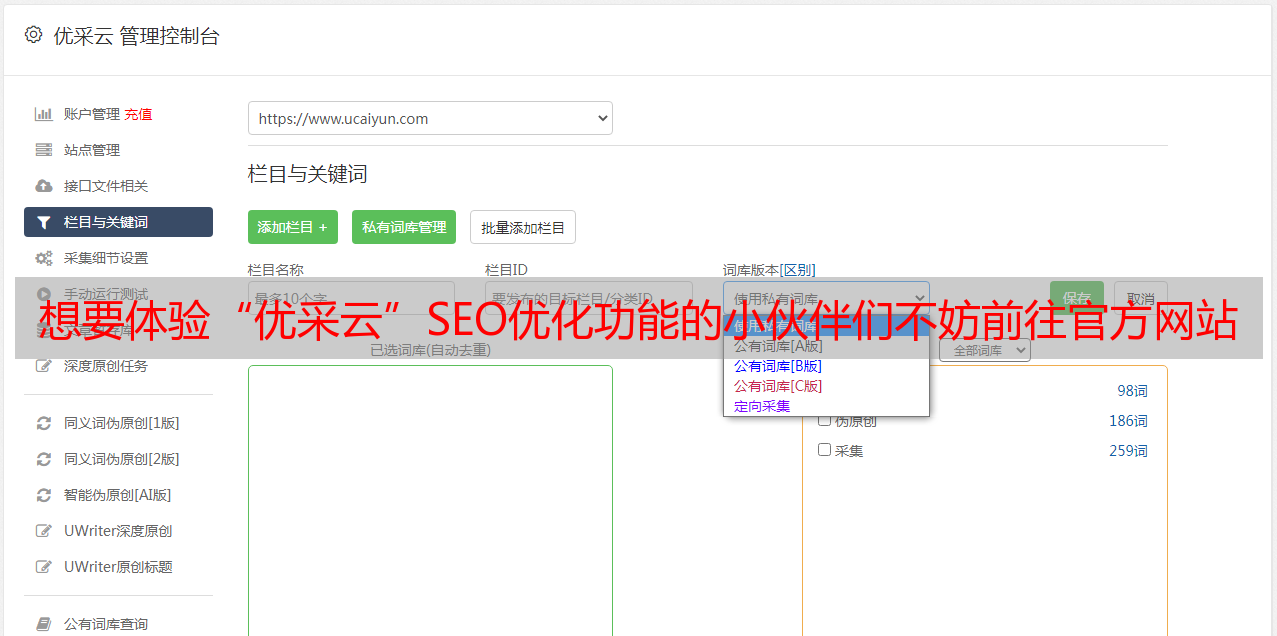 想要体验“优采云”SEO优化功能的小伙伴们不妨前往官方网站