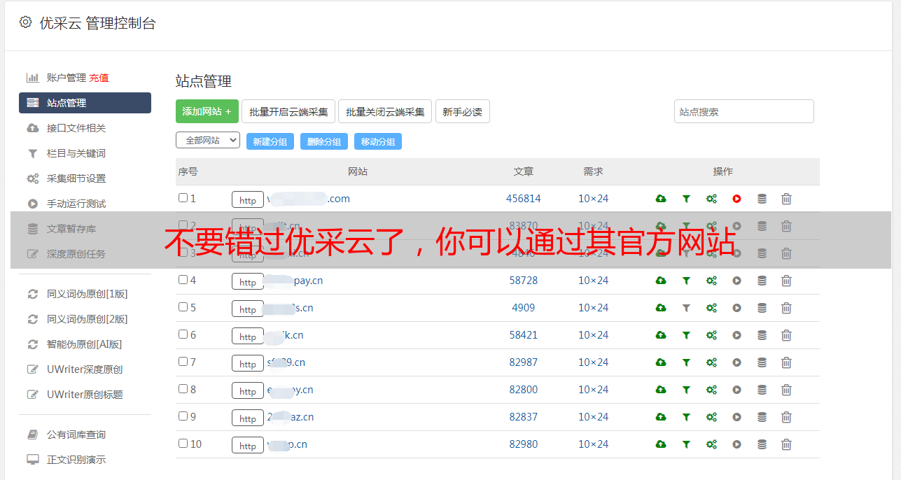 总而言之,优采云不仅能够帮助用户快速、准确地进行伪原创内容采集,而且还能为用户提供强大的SEO优化工具。如果你想要快速、准确地实现SEO优化,那么就不要错过优采云了!你可以通过其官方网站 www.ucaiyun.com 了解更多详情。