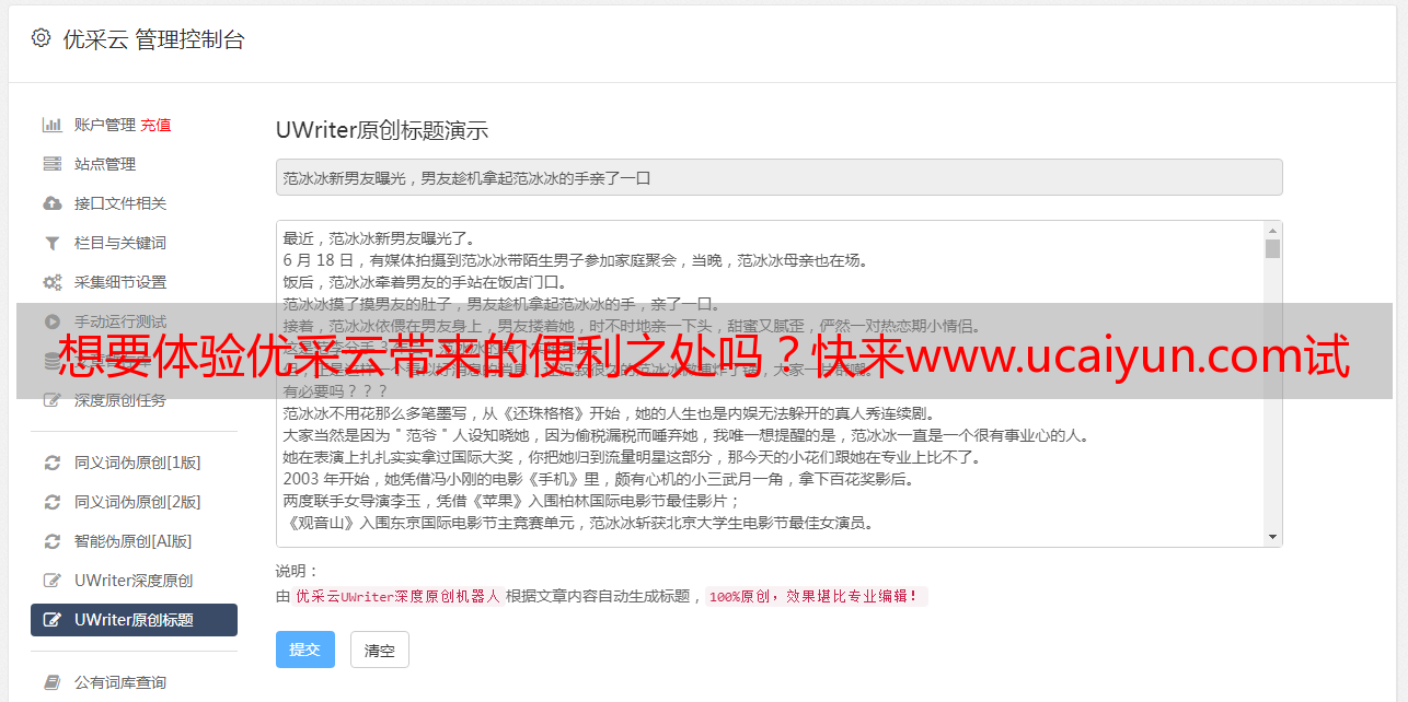 想要体验优采云带来的便利之处吗?快来www.ucaiyun.com试试吧