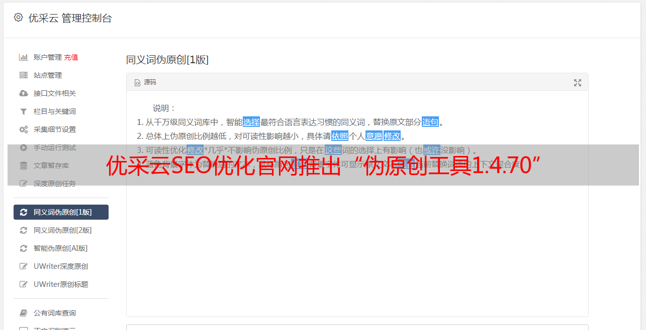 优采云SEO优化官网推出“伪原创工具1.4.70”