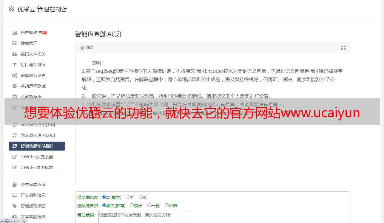 总而言之,优采云是一款非常出色的免费文章采集软件,它不但能有效地帮助用户快速检索并采集相应内容,而且还能够对原始内容进行SEO优化处理,使之能够在不同平台中得到最佳展示。而且使用优釅云时不必担心隐私泄露问题:该软件坚持“尊重用户隐私”原则,保证所有信息都得到最大限度保密。想要体验优釅云的功能,就快去它的官方网站www.ucaiyun.com试试吧~