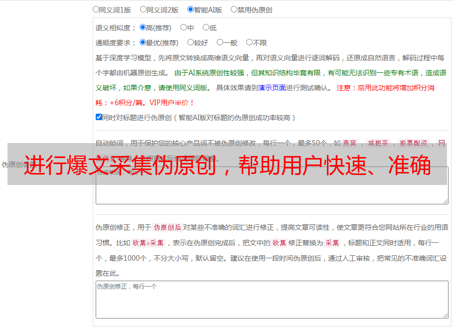 进行爆文采集伪原创,帮助用户快速、准确地实施