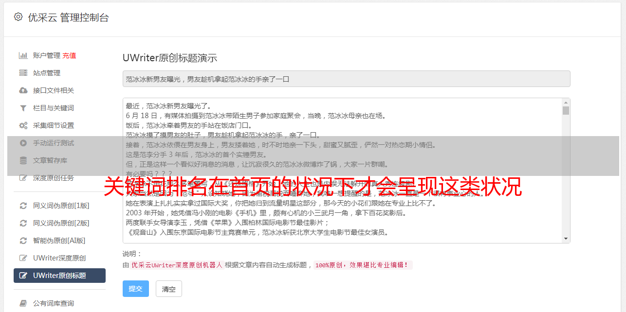 关键词优化。我们为搜索引擎做这件事。我们优化相关事宜。我们为读者做。如果把这两个优化放在一起,估计具体事情的优化会更加重要。因为搜索引擎可能会模仿读者文章、关键词的要求:密度过大,有堆积的嫌疑,里面的链子不合理,网站收录大量锚文本,优化优化、不相关的具体内容和标题等,网站k14@过度优化的方法会降低网站的功耗。当搜索引擎更新或者大幅度更新的时候,肯定会出现功率降低或者造成K的情况,因为一般搜索引擎只是按照网站Adjust排名的正常优化,更新就是更新规则搜索引擎。下降或成为 K 的权利将按预期发生。如果修改标题,搜索引擎在抓取的时候会认为你是同一个未使用的页面,所以会重新评估并收录,看起来你的页面的权重会变成0,会被搜索接受并加权又是引擎。 关键词在描述中不能重复3次,不能叠加。主页的重点网络推广怎么能算是同一个成功词呢?虽说是自然排列,但也不宜刻意堆在主位的那部分。首页的关键词密度控制在3%-4%左右。标题留几个关键词就够了。太多的搜索引擎不喜欢它。建议设置页面主题+主题名称+平台名称。至于关键词。但至少页面上还有一些具体的内容。描述非常简单。只有语言流畅。页面大致总结。两三遍关键词就够了。像天涯这样的论坛是网络社区的主要形式之一。 ,也是一个很好的推广方式,他们主要是用户量大,受众广,互动性强,可以人为地建立影响力,可以在论坛上发布相关软文和帖子,广泛传播网络,但目标受众并不容易确定。非常不错的***和稳定的打开速度。与优化相比,好的***主要是指***包括关键字或商家名称,***简短易记。另外,这是老***和新***的区别,当然老***更有利于优化,***只影响一小部分优化,而网站的协调和打开速度尤为重要,按照数据调查,大致相同网站的缓慢打开速度会减少70%的流量。如果出现异常,这不利于网站的权重增加。 网站的具体项目应该不断更新,而不是两两更新。干脆把网站弄干,为了优化关键词的排名,要注意标题。只要标题不吸引人,有关键词的流量是不够的,消费者的失败率应该更高。结果关键词的排名无法达到预期的效果。因此,标题的吸引力会直接影响关键词排名的优化。