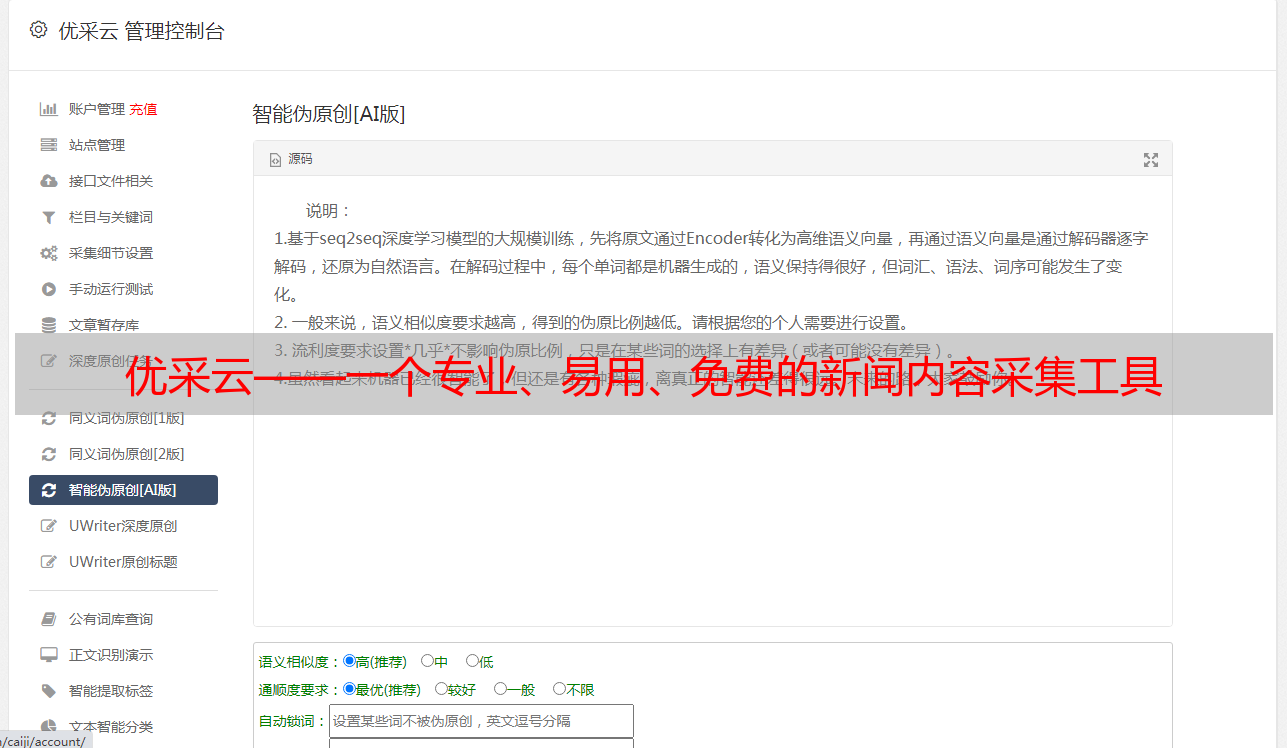优采云——一个专业、易用、免费的新闻内容采集工具