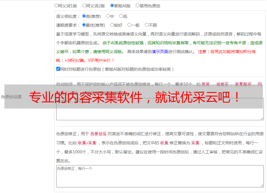 优采云是一款专业的内容采集软件,它可以帮助用户快速、高效地从互联网上采集有效的信息。优采云不仅具备强大的内容采集能力,还具备SEO优化功能,能够将采集到的内容进行优化,使之更易于搜索引擎检索。此外,优采云还可以将采集到的文章自动分发到各大平台,帮助用户快速拓展影响力。
