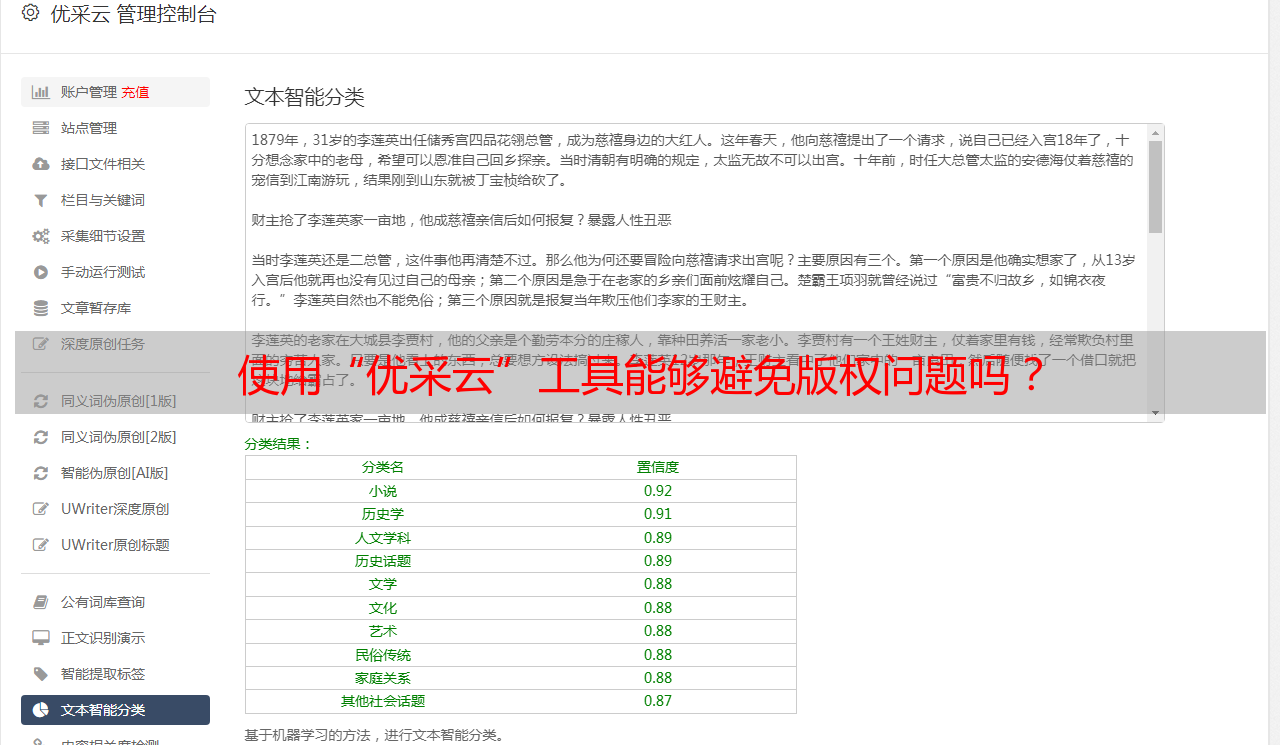 为此,我们强烈推荐使用“优采云”这一软件。这是一款专业的SEO优化工具,能够帮助用户快速、安全、高效地实现文章的伪原创。此外,该软件还能够对文章中出现的重复语句进行高度准确地识别和校正。因此,使用“优采云”工具能够有效地避免版权问题并保证文章内容真实性。