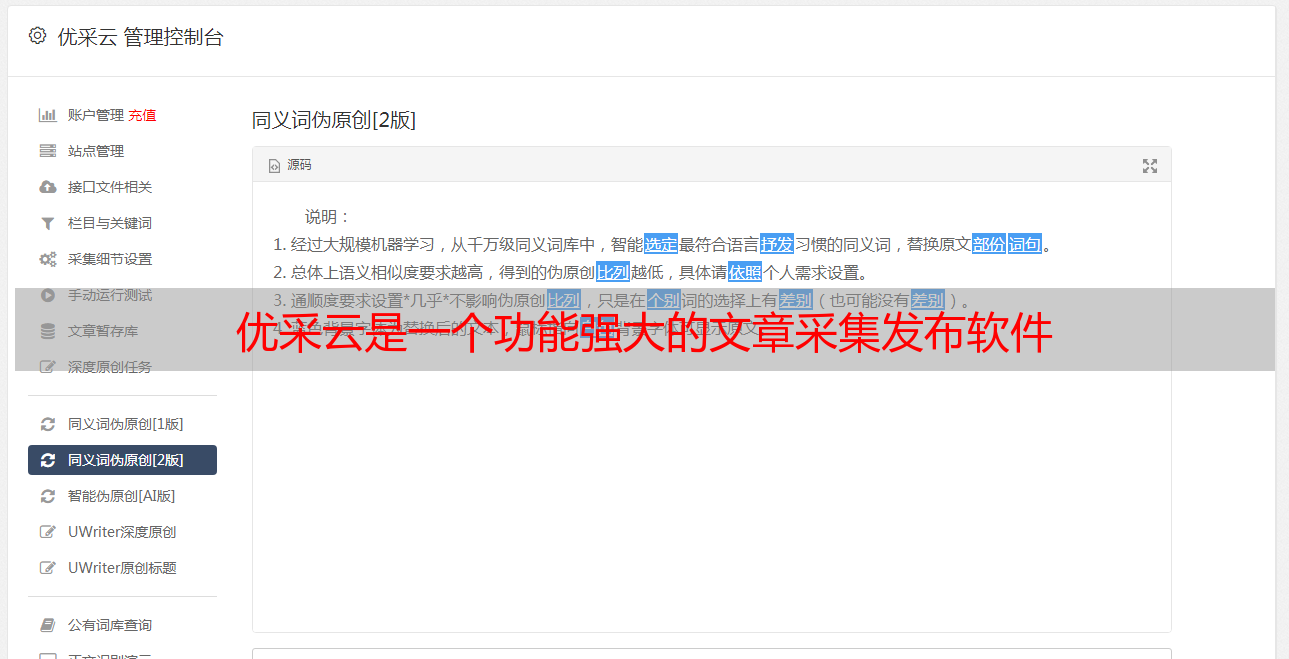 总之,优采云是一个功能强大、易用性强的文章采集发布平台。它不仅能够有效地减少用户在文章采集发布这一进程中所耗费的时间和精力,还能够通过SEO优化来促进文章流量和传播。如想了解详情,请浏览官网www.ucaiyun.com 。