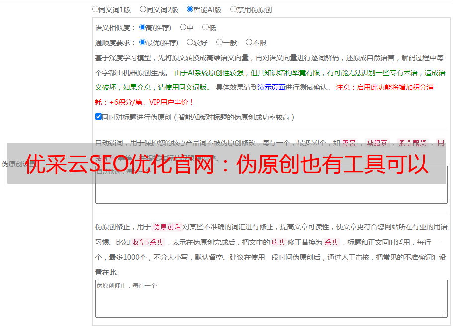 总之,伪原创也是有相应工具可以使用的。但是使用前一定要注意上述问题才能避免出问题。特别是对于SEO来说,如果能够正确使用相应工具来生成高质量的内容并避免出问题(例如重复性、语法和书写风格方面出问题)都是很有必要的。因此平时在使用相应工具时一定要特别注意并校验好所生成出来的内容才能真正发挥作用。