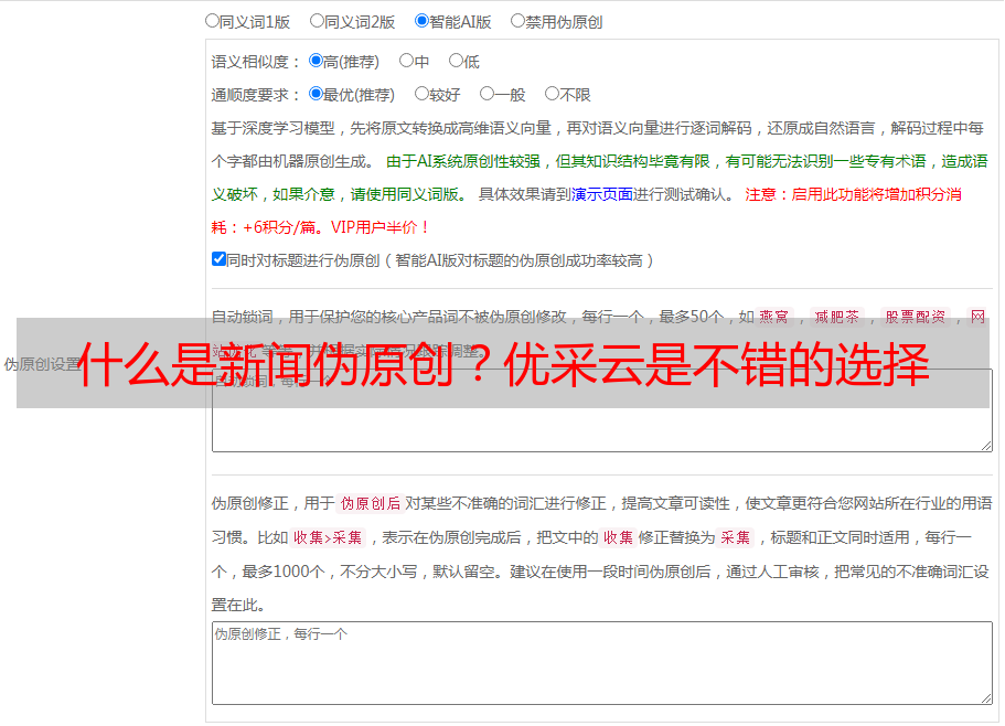 优采云是一款功能强大、易用性高的新闻伪原创工具,可以帮助用户快速生成大量高质量的内容。此外,它还具备SEO 优化能力,可以帮助用户将生成的内容在搜索引擎中显示出来。