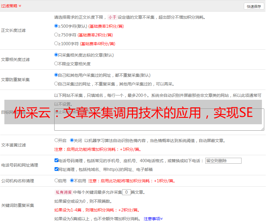 优采云 发布时间: 2023-01-30 19:38现在,信息的快速传播和发布已成为一个时代的标志。信息的发布,不仅仅是传统的新闻媒体、广播电视,而是以互联网为代表的新型传播形式。互联网上发布的信息,以文章、图片、视频等形式呈现,这些形式也都有它们各自独特的魅力。而其中,文章采集调用技术的应用,尤其显得重要。