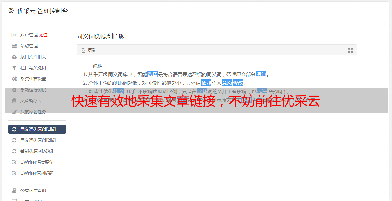 此外,优采云还具备强大的SEO优化功能,可以将用户采集到的文章链接进行优化,使之在搜索引擎中更好地展示,从而有效地为用户带来流量。
