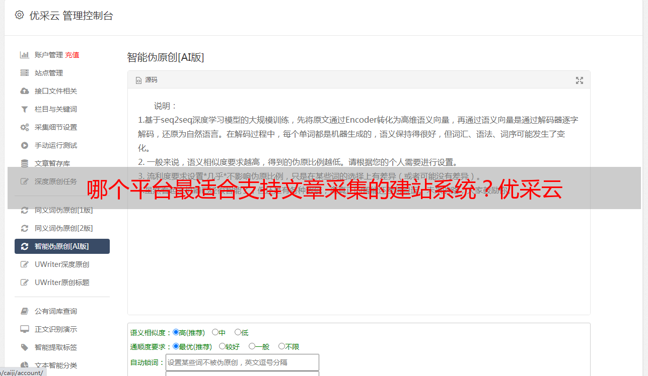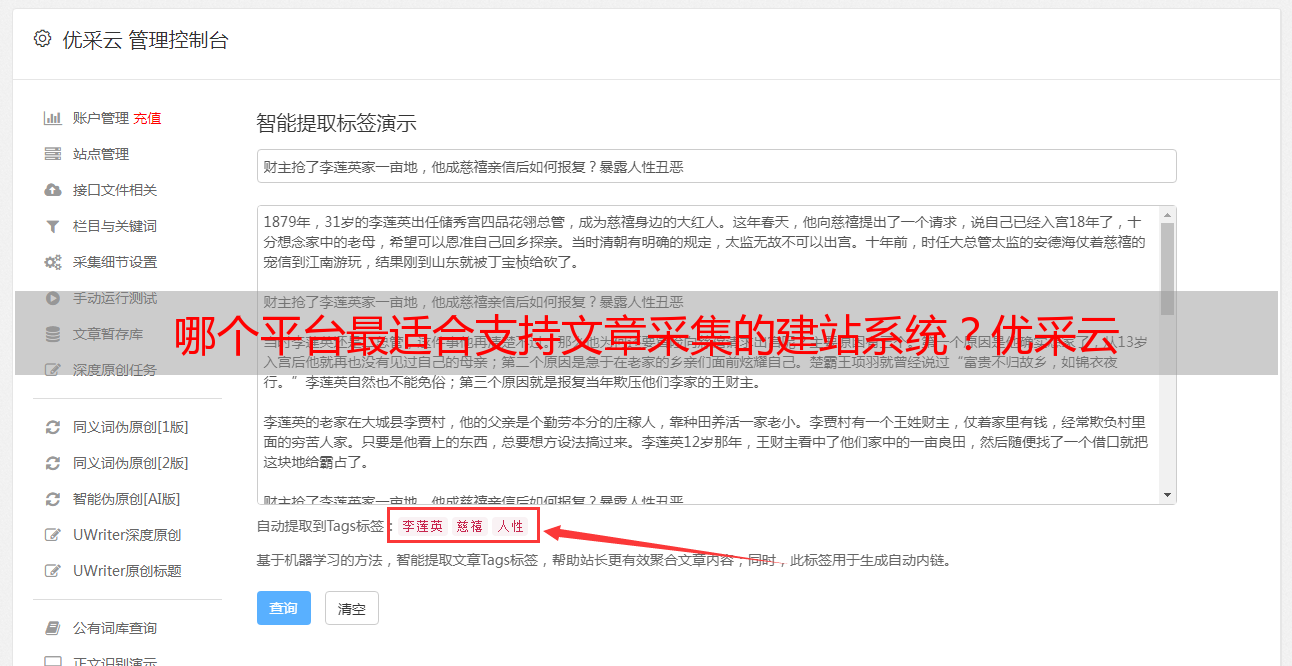 总之,当我们想要找到一个能够方便快捷地支持文章采集的建站系统时,优采云和WordPress都是不错的选择。优采云具有强大的SEO优化功能,能够帮助你获得高质量、相关性强的内容来吸引流量;而WordPress则有一个强大而易于使用的文章采集功能,能够帮助你快速、有效获取信息并整合到你的内容中去。因此,如果你想要找一个能够方便快捷地支撑文章采集的建站系统时,优采云和WordPress都是不错的选择。