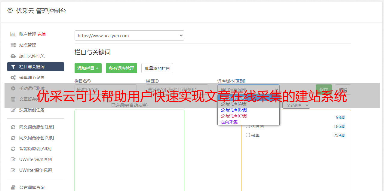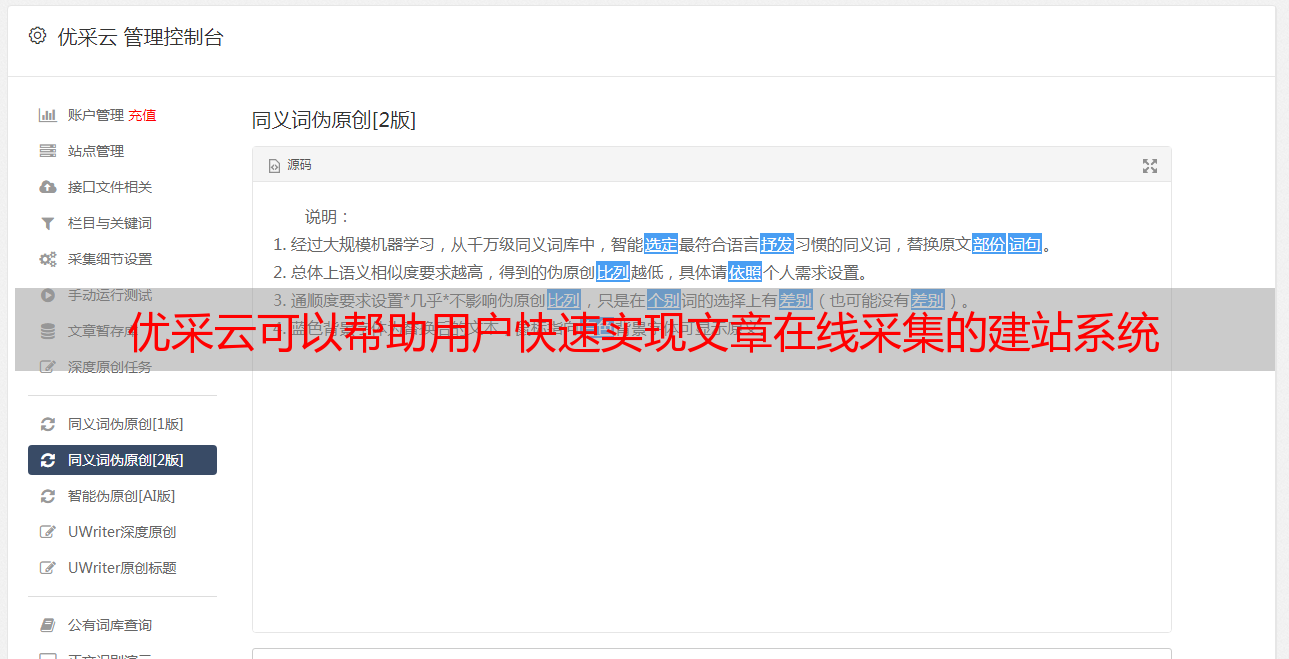 优采云可以帮助用户快速实现文章在线采集的建站系统