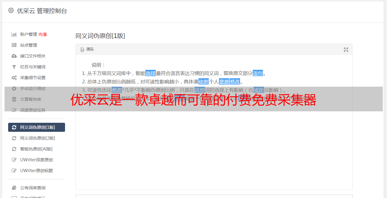 优采云是一款优秀的付费免费采集器,它由国内专业SEO优化团队打造。该产品有着丰富的功能模块、卓越的性能表现、友好的界面、强大的安全保障。