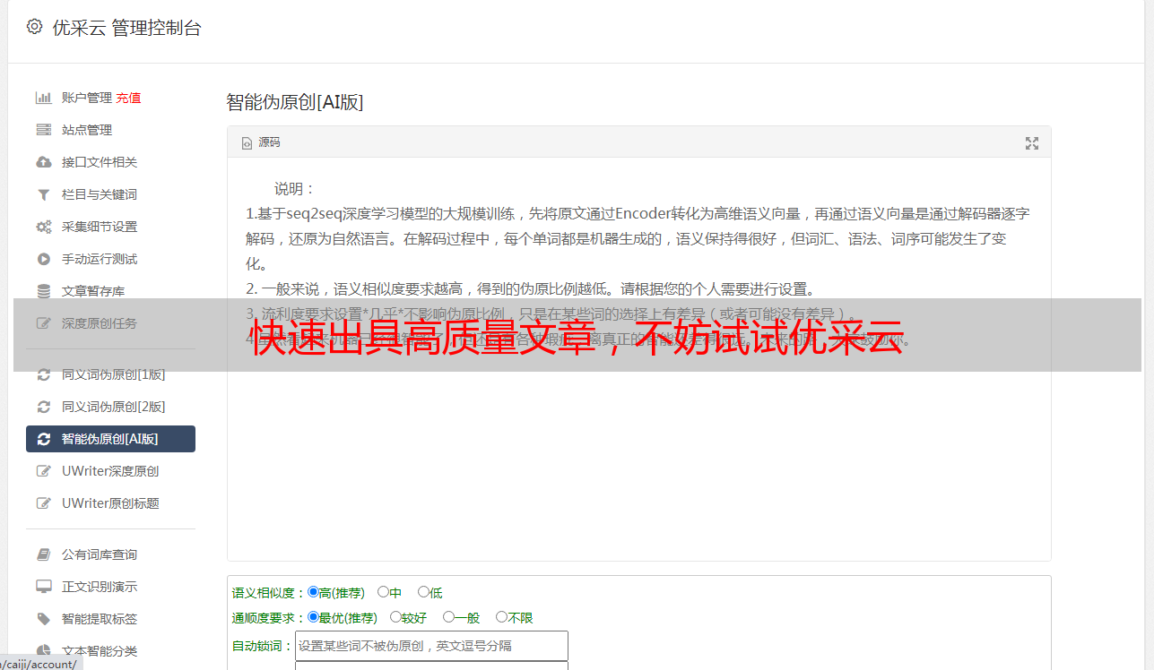 快速出具高质量文章,不妨试试优采云
