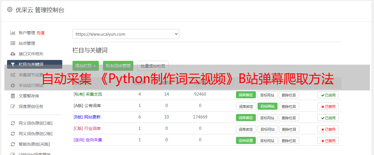 自动采集 《Python制作词云视频》B站弹幕爬取方法