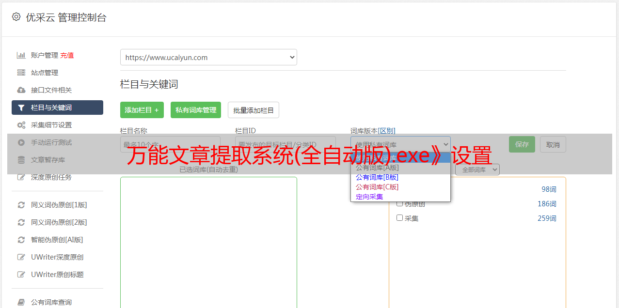 优采云 发布时间: 2021-06-07 06:05万能文章提取系统(全自动版).exe》设置