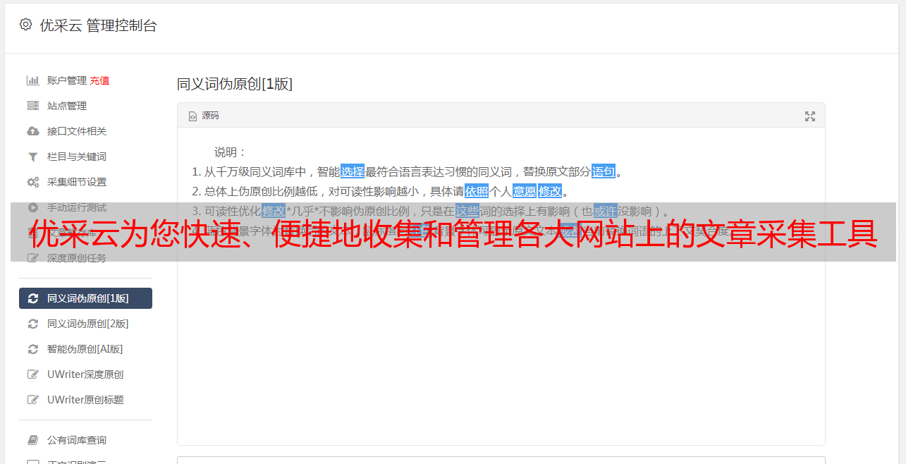 优采云是一款非常出色的网页文章采集工具,它可以帮助我们快速、便捷地收集和管理各大网站上的文章内容,并提供SEO优化功能,使内容更加合理、有效地利用。