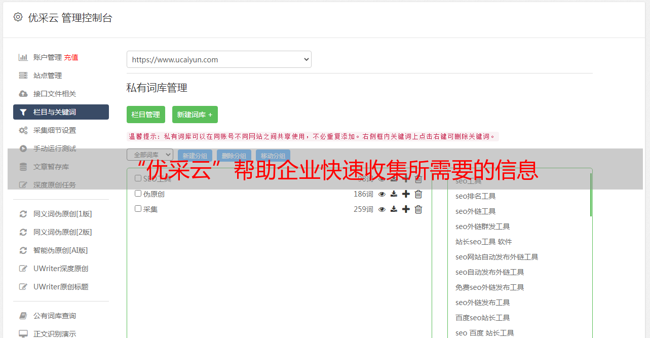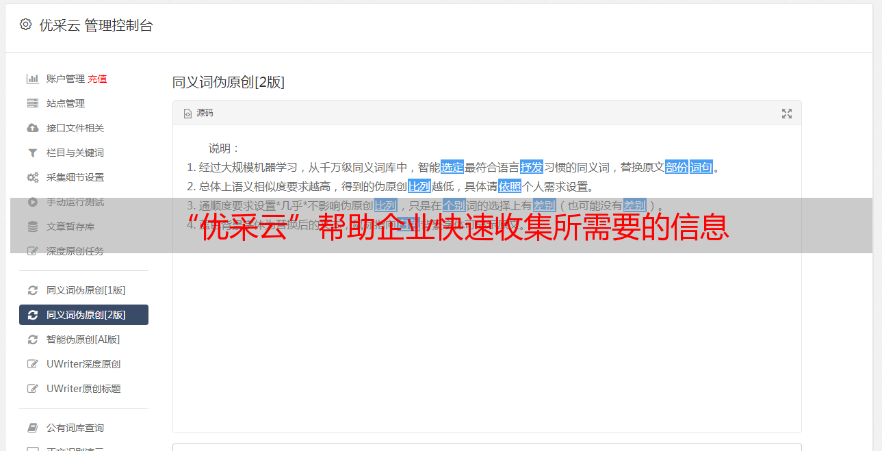 总之,通过使用“优采云”所能够实现的快速、准确地资料采集和SEO 优化能力是千家万户想要引入新一代信化应用中不可或缺的一部分。如想进一步了解详情请浏览它官方站 www.ucaiyun.