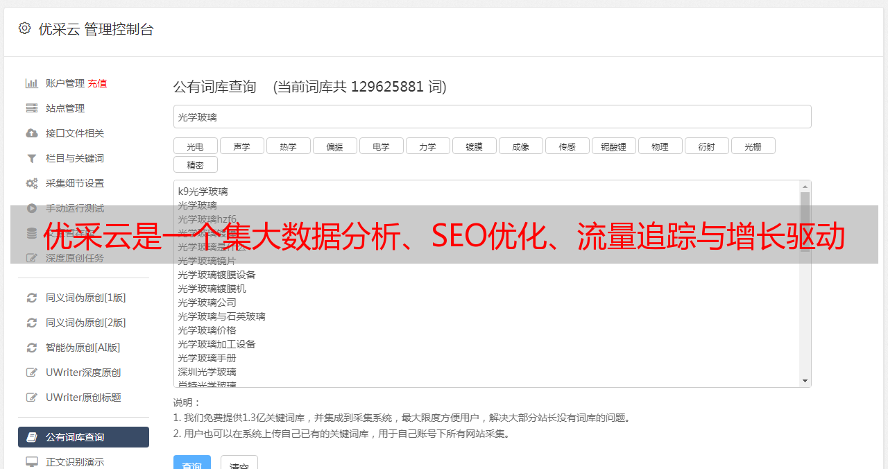 优采云是一个集大数据分析、SEO优化、流量追踪与增长驱动于一体的全托管文章内容平台