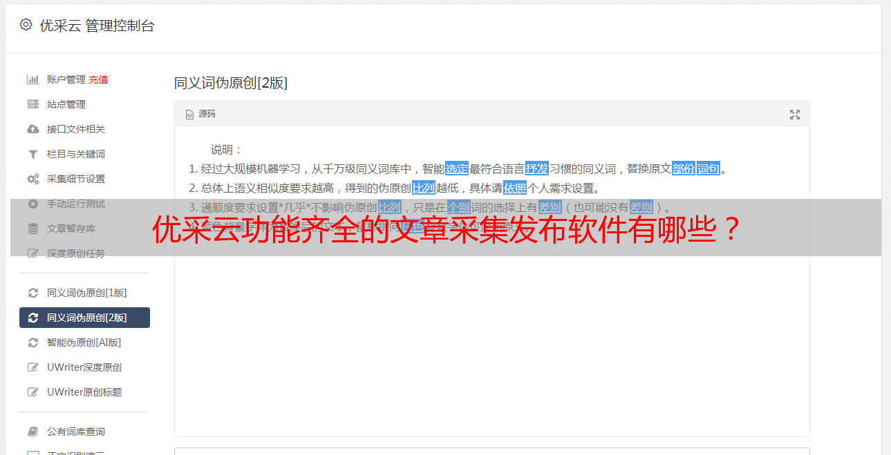 总之,优采云是一款强大而功能齐全的文章采集发布工具。无论是个人用户还是企业用户都能够快速而方便地将海量的文章资源进行整理和整理,然后快速地将内容分发到各个平台上去。如想要体验优采云的功能特性,请前往www.ucaiyun.com 即可体验该工具所带来的便利性。