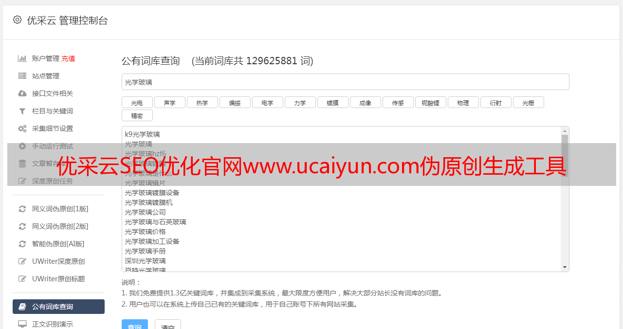 优采云SEO优化官网www.ucaiyun.com伪原创生成工具