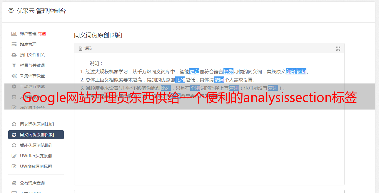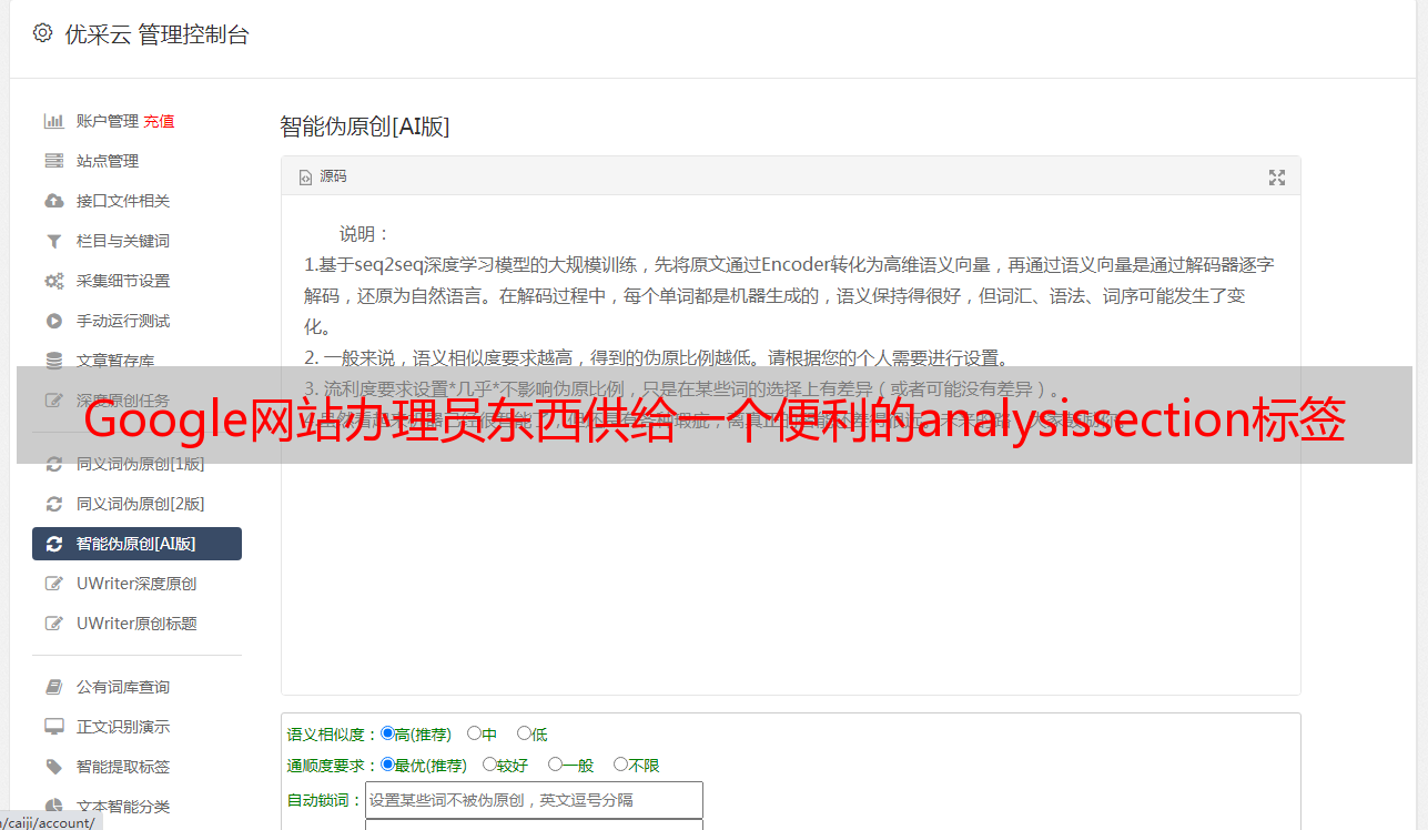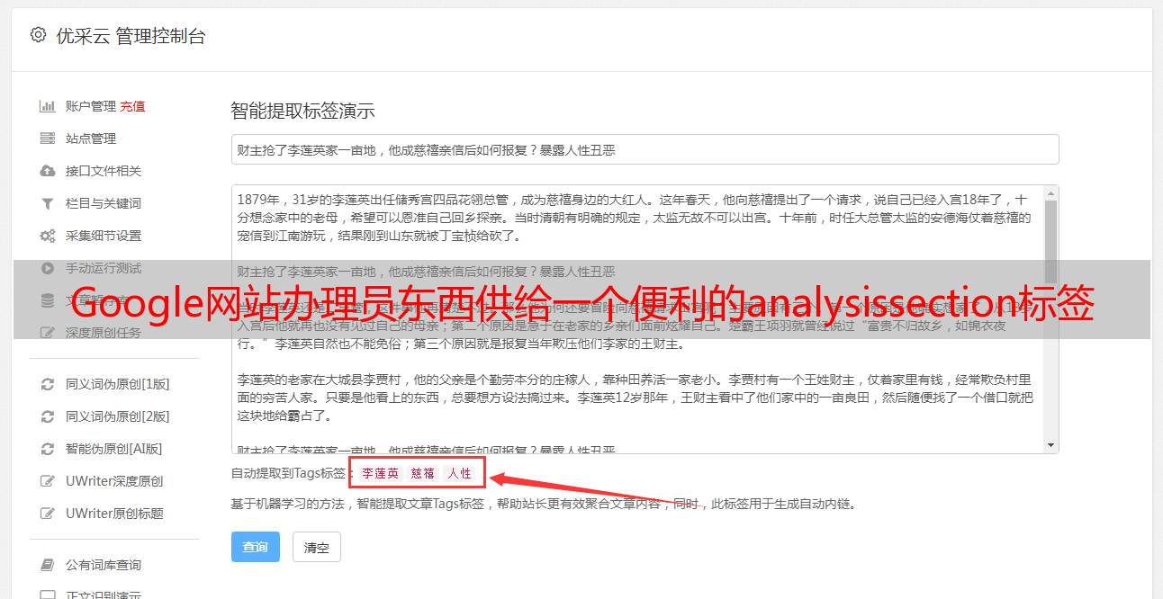 优采云 发布时间: 2021-06-07 20:24Google网站办理员东西供给一个便利的analysissection标签