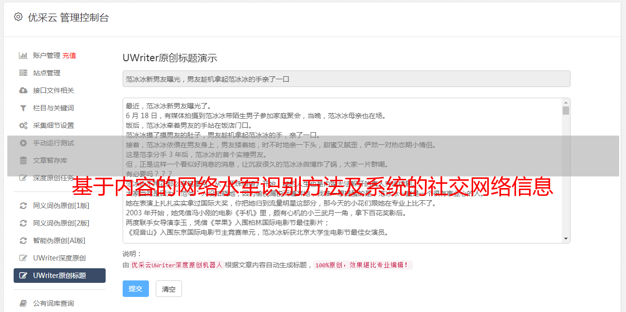 基于内容的网络水军识别方法及系统的社交网络信息